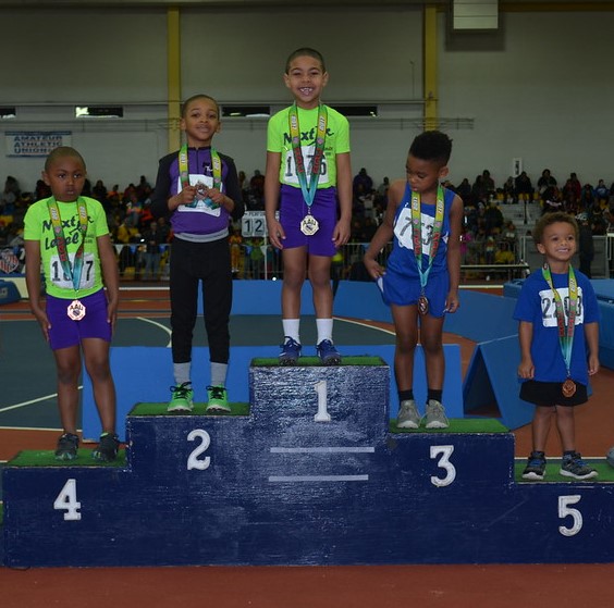 The talented athletes from Next Level left quite an impression during the East Coast Indoor competitions. The Boo Willimas Sportplex fans witnessed 5 year old Taraji Timmons win triple gold as she dominated the sprint events for girls 6 & under. 11 year olds, Mariah Perry and Jamon Simes each won their 55m Hurdle races. They won in record times! Both set new meet records in the events. Jamon went on to win gold in the 11-12 year old boys 55m dash, and he anchored the winning 11-12 boys 4 x 200m relay. He was joined on the team by Derrick Reid Jr, Aiden Gaddy, and Jalial Timmons. 14 year old Madison Minga-Perry picked up a gold, silver and bronze medal, while competing in the 15-16 year old girls 400m dash, Long Jump and 200m dash. Overall, the kids won 20 medals during our final indoor compettion of the season.