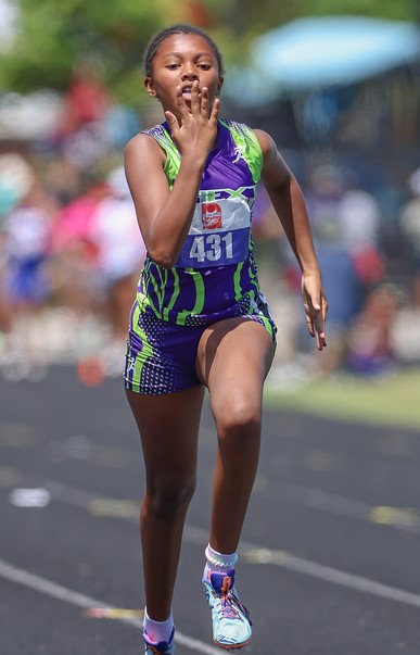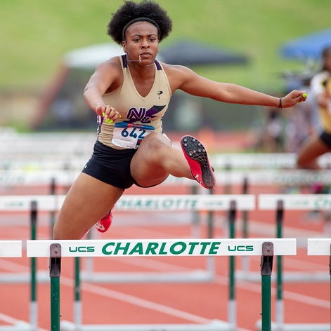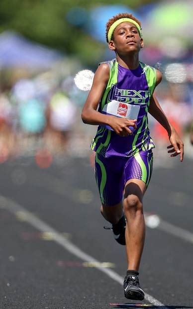 They came from 15 different states and 2 countries, yet it wasn't enough to stop the Next Level athletes from excelling! Youth Boys "Most Outstanding Athlete" award winner, Lamar Mills Jr. sprinted to first place finishes in both the 100m and 200m dash races. 12 year old, Jamon Simes (pictured above) continued his dominance in the 80m hurdles. Madison Minga-Perry won the 15 -16 year old girls Long Jump and the 13 -14 year old boys won the 4 x 100m Relay.